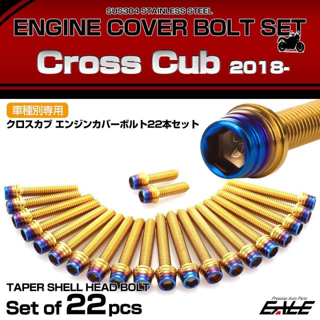 エンジンカバー ボルトセット クロスカブ110 2018年- 22本セット テーパーシェルヘッド ホンダ用 ゴールド&ブルー TB6337
