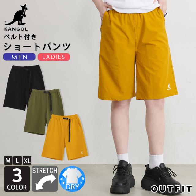 KANGOL カンゴール ハーフパンツ メンズ ドライタッチ さらさら ナイロン ストレッチ ブランド ロゴ刺繍 ベルト付き クライミング ショートパンツ ショーツ 短パン ボトムス 無地 韓国 ゆったり おしゃれ シンプル カジュアル ユニセックス 春 夏