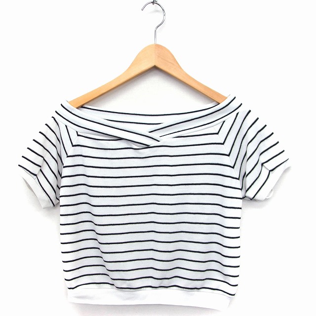 【中古】ローリーズファーム LOWRYS FARM ボーダー柄 カットソー Tシャツ 半袖 Vネック M ホワイト 白 /FT レディース