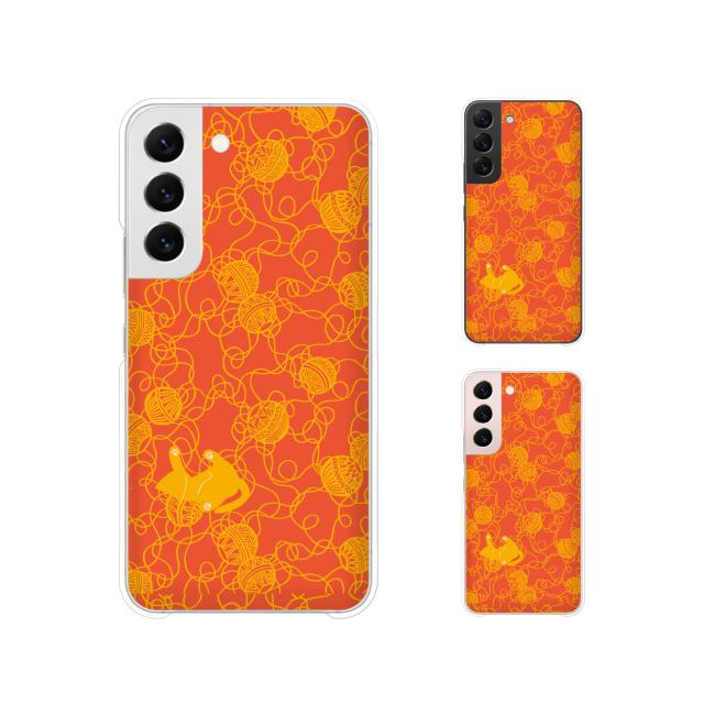 Galaxy S22 (au SCG13 / docomo SC-51C) スマホ ケース ハード カバー 毛糸猫 オレンジ