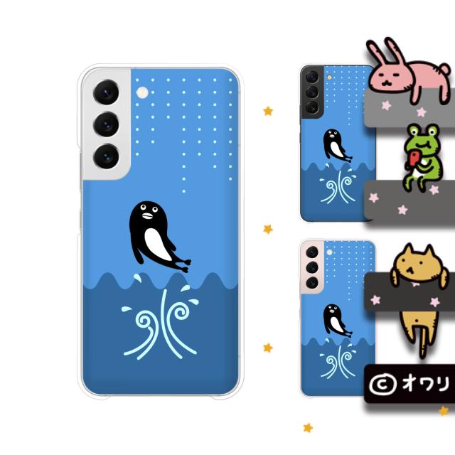 Galaxy S22 (au SCG13 / docomo SC-51C) スマホ ケース ハード カバー オワリ 「ペンギンジャンプ」 ブルー