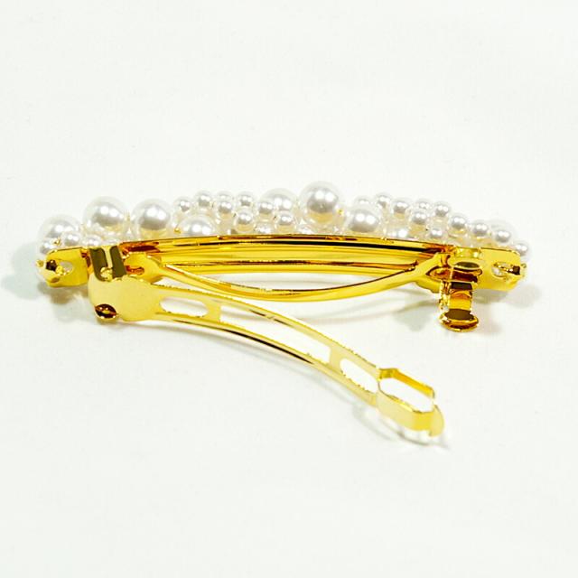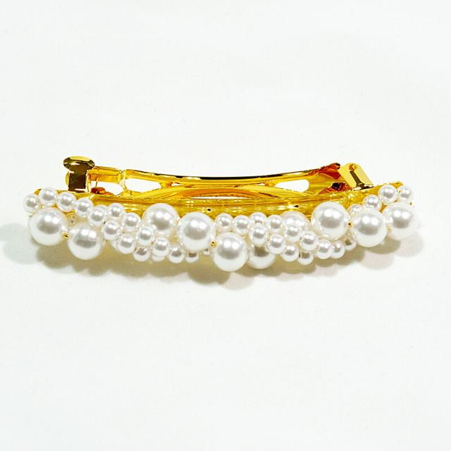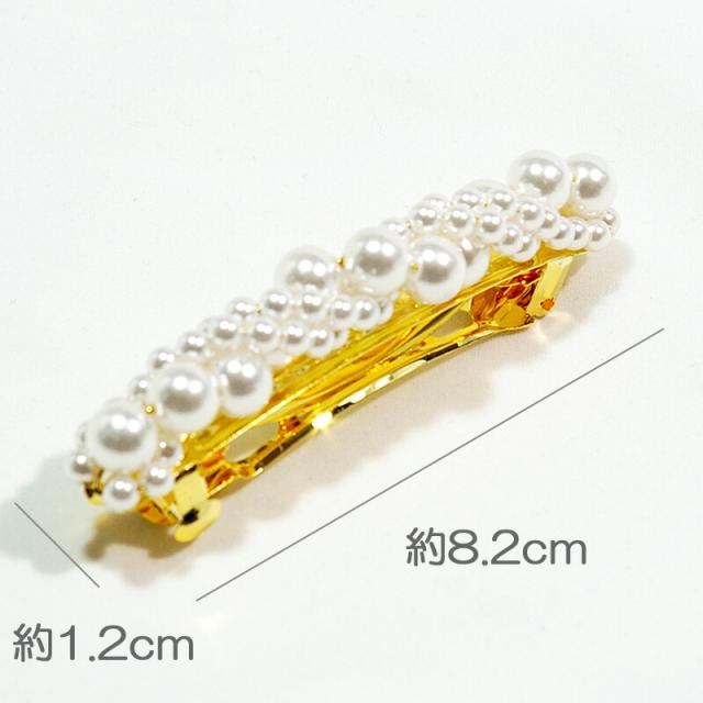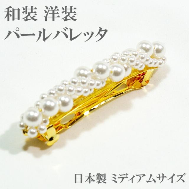 髪飾り パール バレッタ ミディアムサイズ ゴールド 和装 洋装 結婚式 パーティー ヘアアクセサリー 金色 成人式 入学式 卒業式 ママ hrc6035