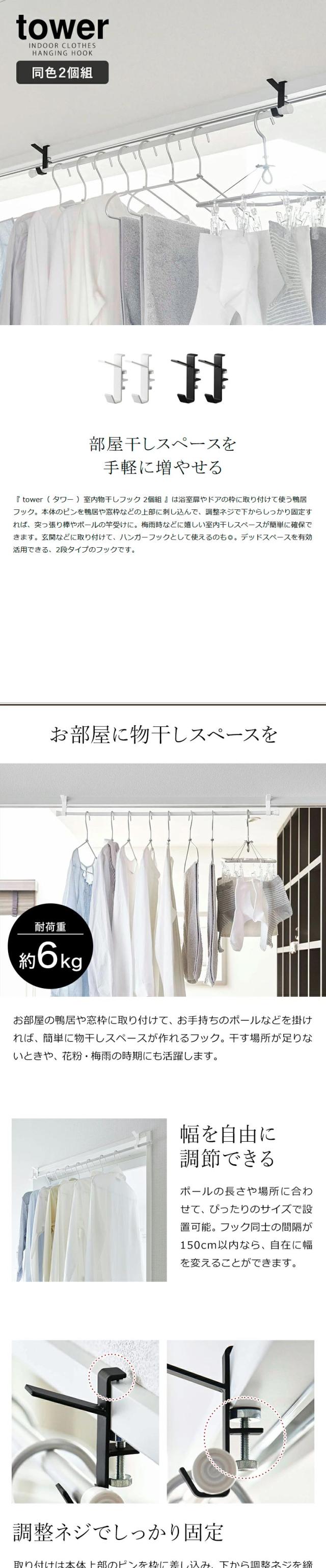 [ 室内物干しフック タワー 2個組 ]tower 山崎実業 部屋干し 物干しハンガー 鴨居 フック 2個 ハンガーフック 物干し竿 洗濯物干し 室内 ホルダー 物干しホルダー 室内干し 窓 窓枠 物干し 洗濯 一人暮らし 帽子 コート おしゃれ yamazaki 5621 5622 公式