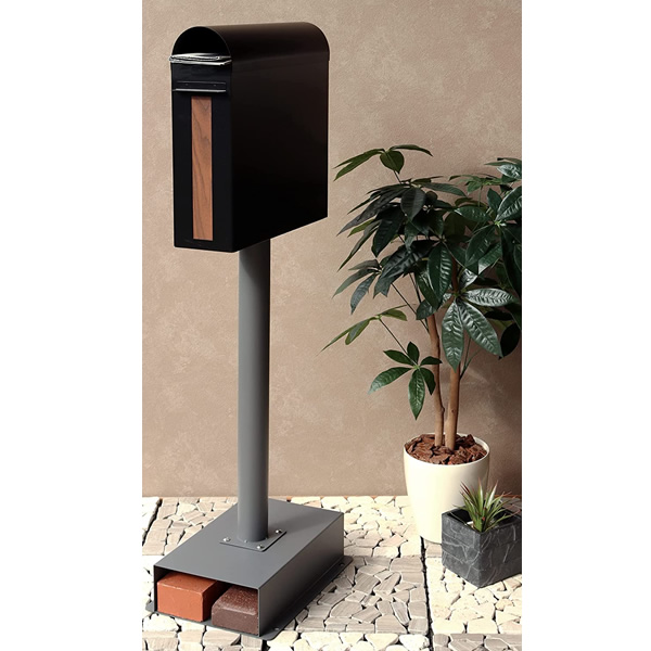 スリム縦型スタンドポスト 置き型 郵便ポスト 郵便受け 新聞受け付き 省スペース 大容量 ブラック おしゃれ