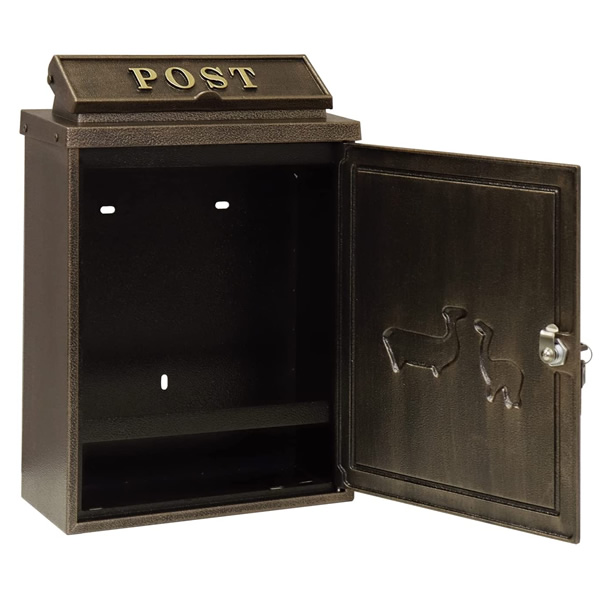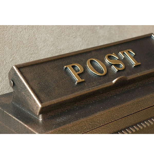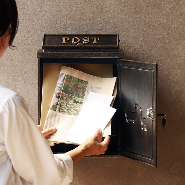 壁掛けポスト 鋳物製 郵便ポスト アンティーク 鋳物 A4サイズ レターパック 大きめ投函口 大容量 横開き扉 鋳造加工 ブロンズ おしゃれ