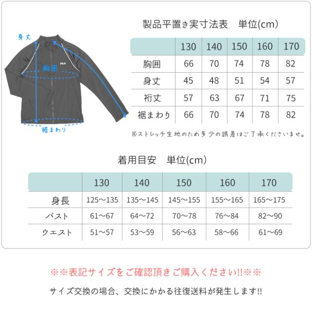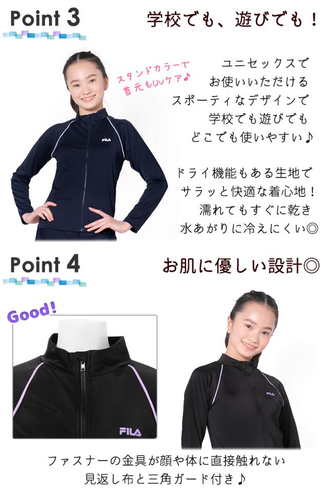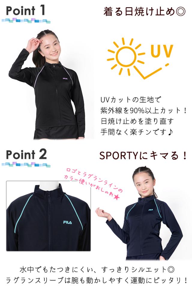 FILA フィラ ジュニア キッズ 水着 ラッシュガード 女の子 男の子 130 140 150 160 170 スクール 水着 《レビュー記入でメール便無料》 学校 授業 スイミング プール 体型カバー 長袖 フードなし 小学生 中学生 高校生 紫外線カット 128-202