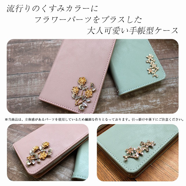 スマホケース デコ フラワー くすみカラー ベルトなし マグネット 右利き用 左利き用 手帳型 スマホスタンド機能 スマホカバー 携帯ケース スマホケース手帳型 iPhone11ProMax AQUOS zero6 Xperia 5IV BASIO4 KYV47 Galaxy A53 Google Pixel7 多機種対応 送料無料