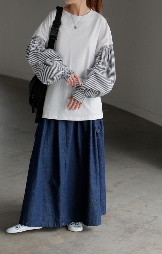 - ずっと気になってたぽわん袖、デニムと合わせて購入しました! シンプルになりがちな白Tとデニムでも、ぽわん袖で可愛くなりました♪肘上まで捲くって五分袖にすると、より“ぽわん”が引き立ってよきです。 普段...
