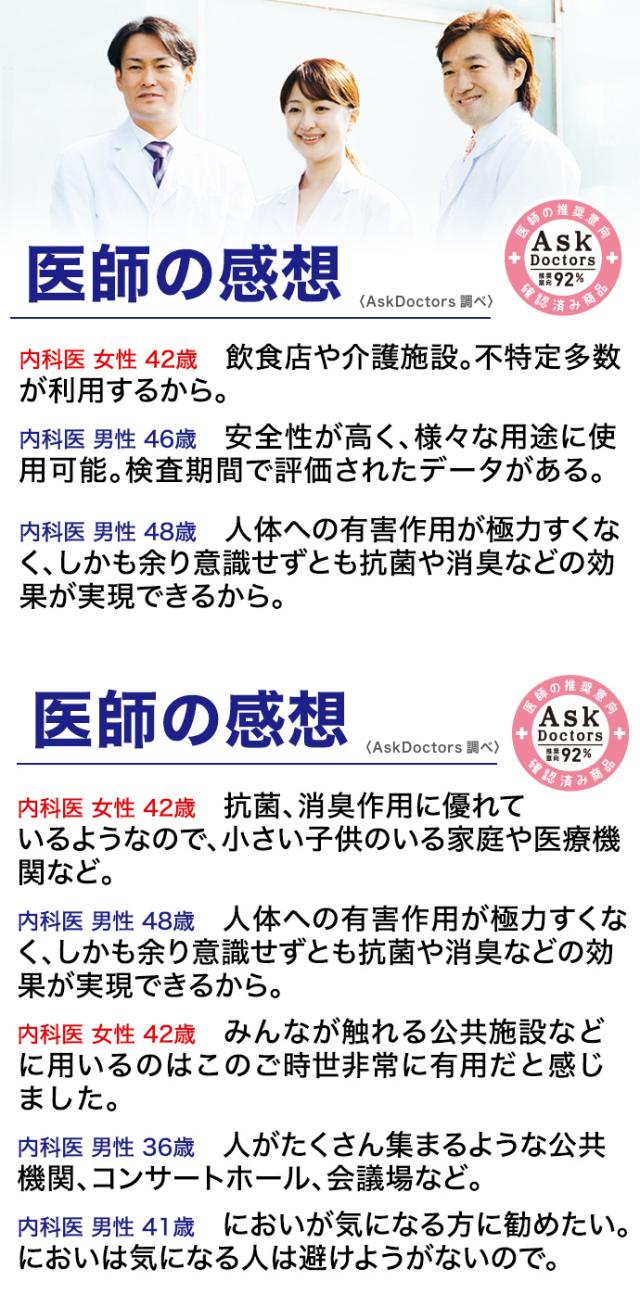 使用上の注意:・用途以外にはご使用にならないでください。・必ず平な場所に置いてください。・内容物が口や目に入らないようにご注意ください。・飲み込んでしまった場合は無理に吐かせず水を飲みこませるなどの処置をしてください。・肌や目に付着した場合はこすらずに水で洗い流してください。・使用中に気分が悪くなったり、赤み、はれ、かゆみ等の異常が出た場合は使用を中止してください。・火気厳禁。直射日光のあたる場所、高温多湿な場所での保管はしないでください。・小さなお子様やペットの手の届かない所で使用、保管をしてください。・全ての菌やニオイに対して効果があるわけではありません。・写真はイメージです。・本品は医薬品・医薬部外品ではございません。