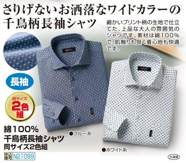 カジュアルシャツ 長袖 メンズ シニア 春夏 綿100%千鳥柄長袖シャツ(2色組)紳士服 男性 ブルー系 ホワイト系 青 白 千鳥チェック 格子柄 プリント 柄シャツ オシャレ 上品 ファッション 40代 50代 60代 70代 80代 父の日 お父さん 綿シャツ コットン sai p21099
