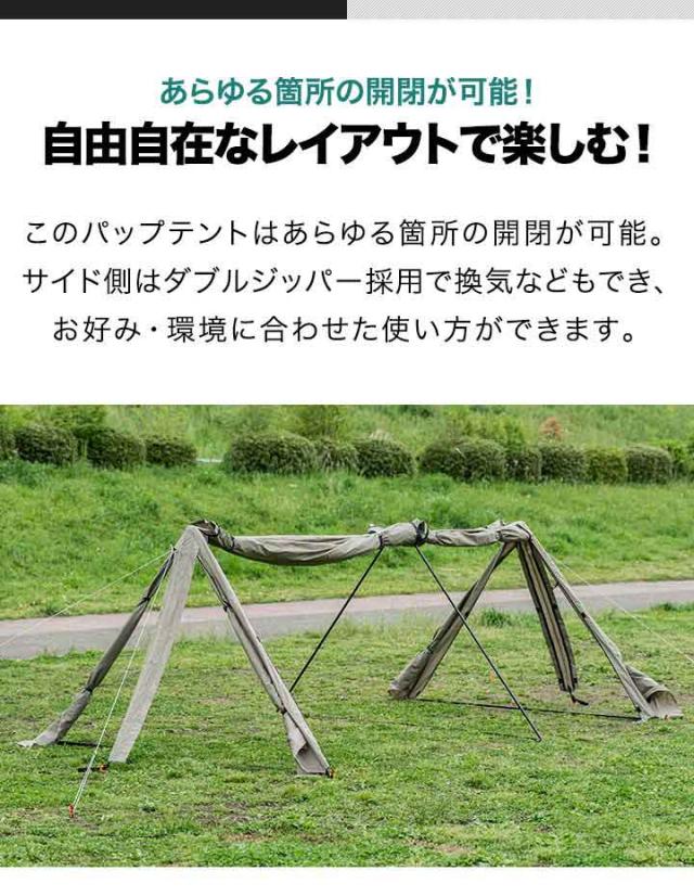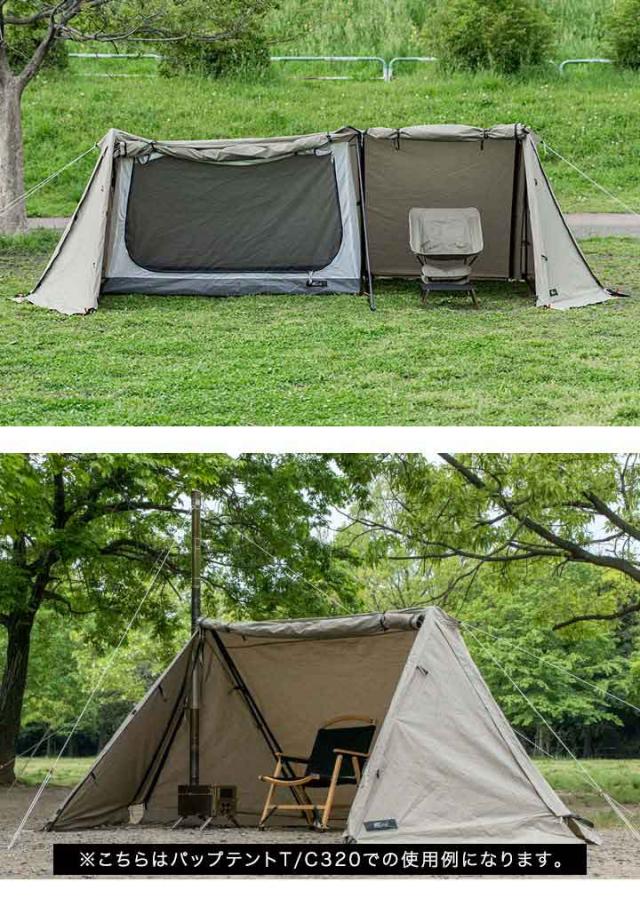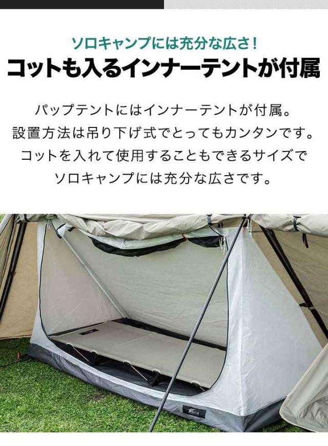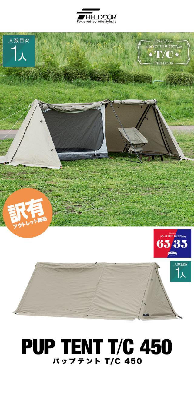 【訳ありアウトレット】FIELDOOR パップテント T/C 450 ワイド 4.5m 難燃ポリコットン ツールームテント 前室 インナーテント付 1人用 ソロテント 三角テント 軍幕 テント A型テント 二又ポール ドームテント ソロキャンプ 焚き火 焚火 1年保証 送料無料