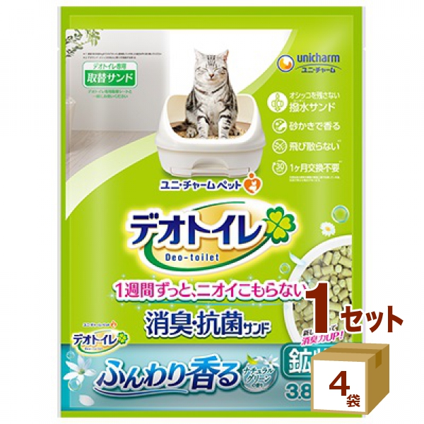 ユニチャーム ペット デオトイレ ふんわり香る消臭・抗菌サンド ナチュラルグリーンの香り 3.8L×4袋 ペット 大容量 まとめて 愛犬 愛猫 シート 猫砂 オムツ おむつ まとめ買い ユニ・チャーム