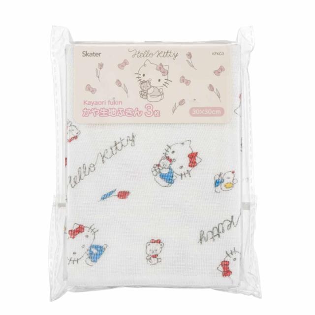 ふきん 綿100% かや生地ふきん 3枚入 ハローキティ ( かや生地 蚊帳生地 布巾 フキン 蚊帳 蚊帳生地ふきん 食器拭き 食器拭きクロス お手拭き コットン 台拭き 食卓用 テーブル用 キッチン用 キティ )