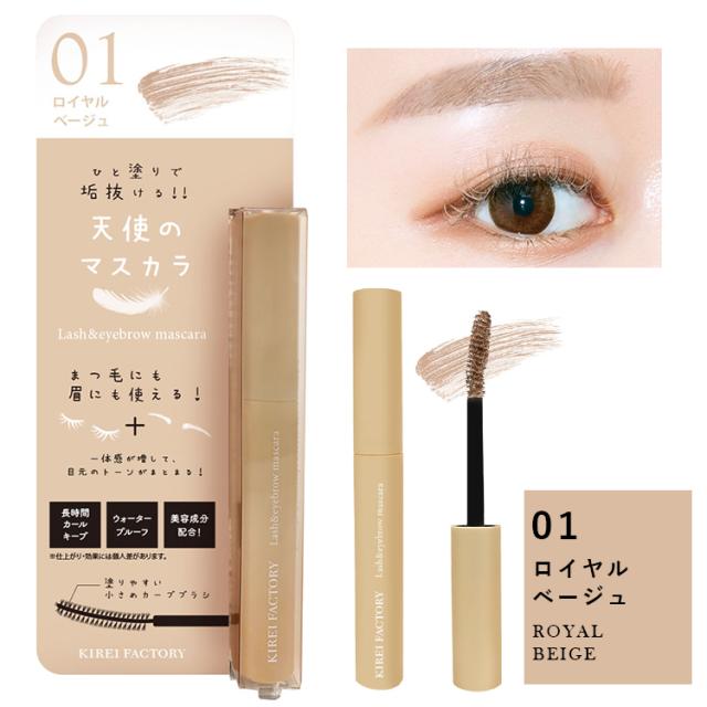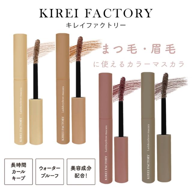 【即日発送】キレイファクトリー カラーマスカラ【天使のマスカラ】ラッシュ&アイブロウマスカラ ウォータープルーフ まつ毛 眉 小さめ カーブブラシ カールキープ 美容成分配合 自然 ボリューム 色素薄い系 垢抜け カラーメイク ナチュラル コスメ 当日発送 KIREI FACTORY