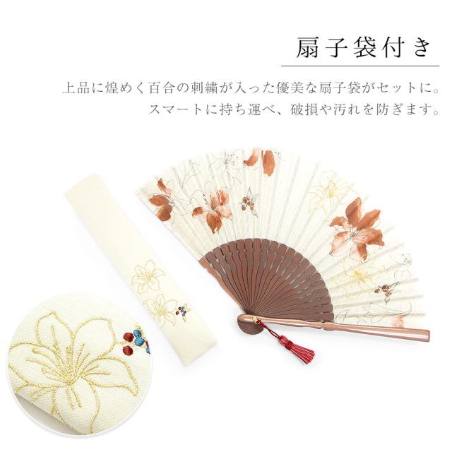扇子 レディース ラフィネ 袋付き 女性用 花柄扇子 おしゃれ ギフト プレゼント 母の日 敬老の日 水彩 刺繍 パール塗 タッセル 房 綿 赤 青 花 かわいい 涼 雑貨 夏小物 浴衣 夏祭り 箱入り