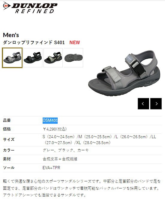 ダンロップ DUNLOP メンズ サンダル スポーツサンダル リファインド S401 軽量 DSM401 父の日 敬老の日