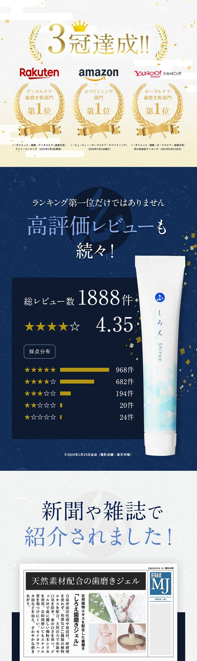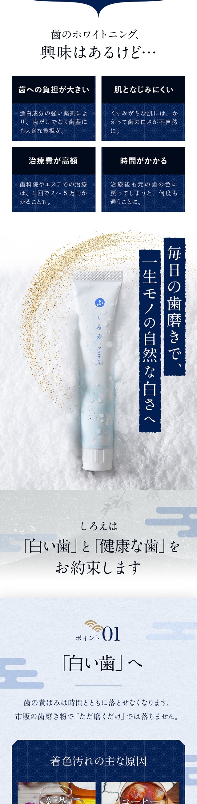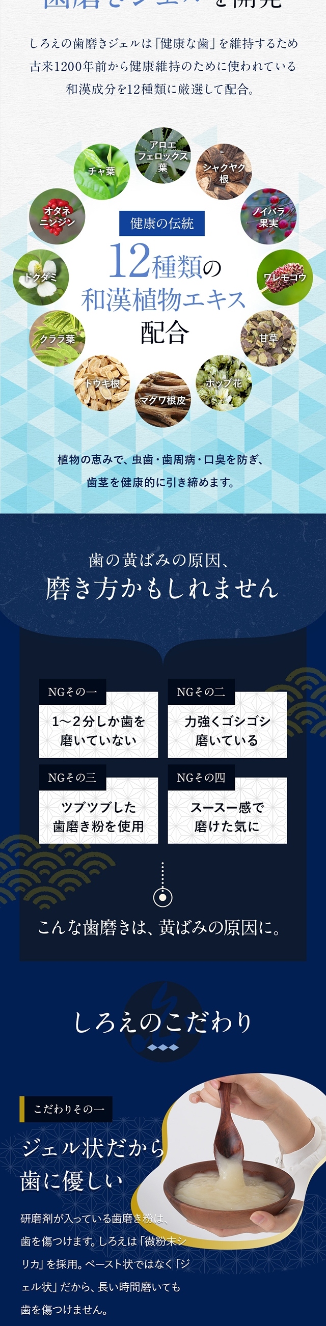 和にこだわった、薬用の ホワイトニング 歯磨き粉 です。『歯にやさしいホワイトニング』を目指しました。