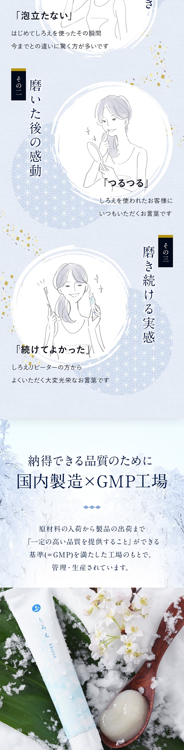 磨き上がりの「すっきり」「つるつる」は自然のちからです。