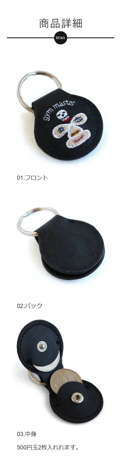【メール便05】 gym master ジムマスター キーホルダー コインキーケース キーケース ハッピー 刺繍 500円玉 2枚入る AirTag スナップボタン レスラー ルアー レディース メンズ ユニセックス サウナ 銭湯 キャンプ アウトドア プレゼント PATY パティ