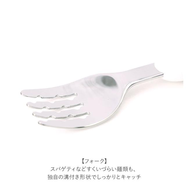| 注意点 | [対象年齢]1.5歳〜 ※必ず保護者や指導者の目の届く所でご使用ください。 ※用途目的以外のご使用はおやめください。 ※キズ・破損・亀裂・変形などが生じた場合は、すぐにご使用をおやめください。部品などを飲み込まれた場合は、病院や医師にご相談ください。 ※持ったまま転ぶと、目やのどに当たり思わぬケガをするおそれがあります。 ※フォークの隙間に指や舌を入れないようにご注意ください。 ※マスコット部は引っ張ったり噛んだりしないようにご注意ください。 ※初めてご使用される前に、必ず洗浄をしてください。 ※ご使用後は必ず洗浄をしてください。洗浄の際は、柔らかいスポンジと食器用洗剤をご使用ください。磨き粉やたわしなどのご使用はおやめください。 ※洗浄後はよく乾燥させ、お子様の手の届かない所に保管してください。 ※麺はフォークの奥までしっかりからませてご使用ください。麺の細さや状態によっては麺が落ちる場合があります ※直火・オーブングリル・電子レンジではご使用いただけません。 ※火のそばに置かないでください。 ※塩素や酸などを含んだ汚れが付着したまま放置しないでください。また、鉄やアルミなどの異種金属製品と接触させたまま長時間放置しないでください。サビの原因となります。 ※落とすなど強い衝撃を与えると破損する恐れがあります。 ※カメラやモニターの性質により、画像と実物の色の違いがある場合がございますのでご理解願います。 |