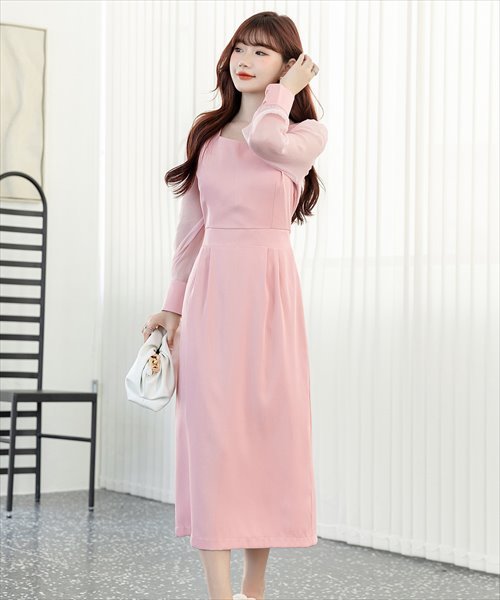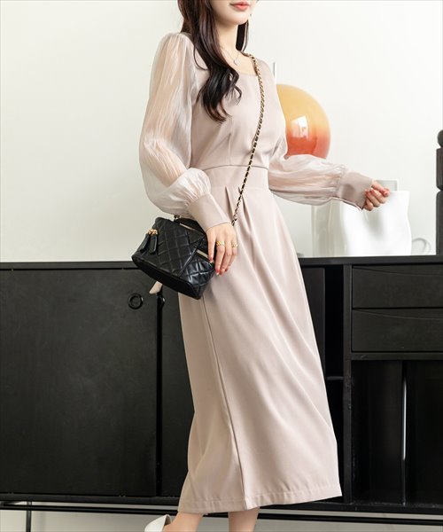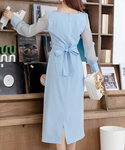 テディショップ(TeddyShop)/レディース シースルーボリューム袖のバックリボンワンピース