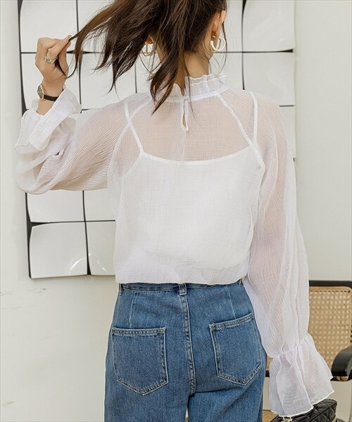 レディース シースルーフリルブラウス
