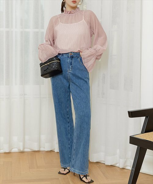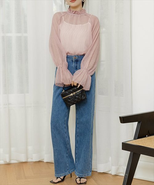 フリルハイネックブラウス