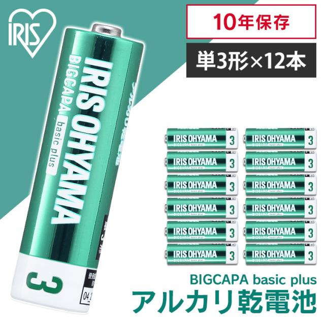 BIGCAPA basic+ 単3形アルカリ乾電池12本パック LR6Bbp/12S 乾電池 アルカリ乾電池 単3 単3形 単三 単三形 電池 バッテリー 12本 4967576560108 アイリスオーヤマ (メール便) 送料無料