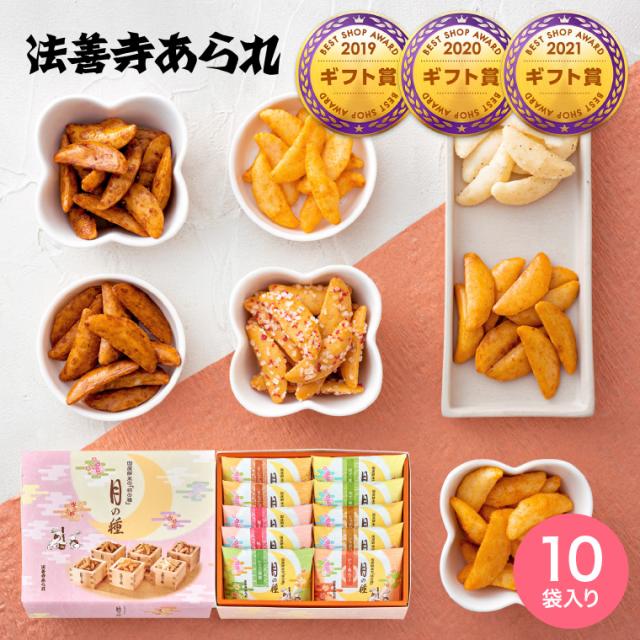 母の日 ギフト お菓子 スイーツ 法善寺あられ 月の種ギフト 10袋 包装済、のしは外のし おかき 国産餅米100%使用 内祝い 出産内祝い 結婚内祝い 結婚祝い メッセージ付き 写真入り 誕生日プレゼント 入学内祝い お返し