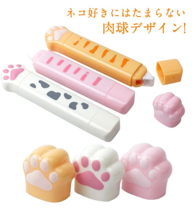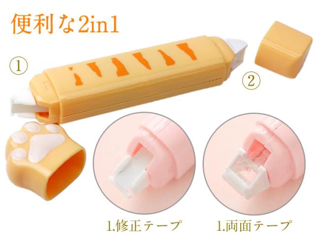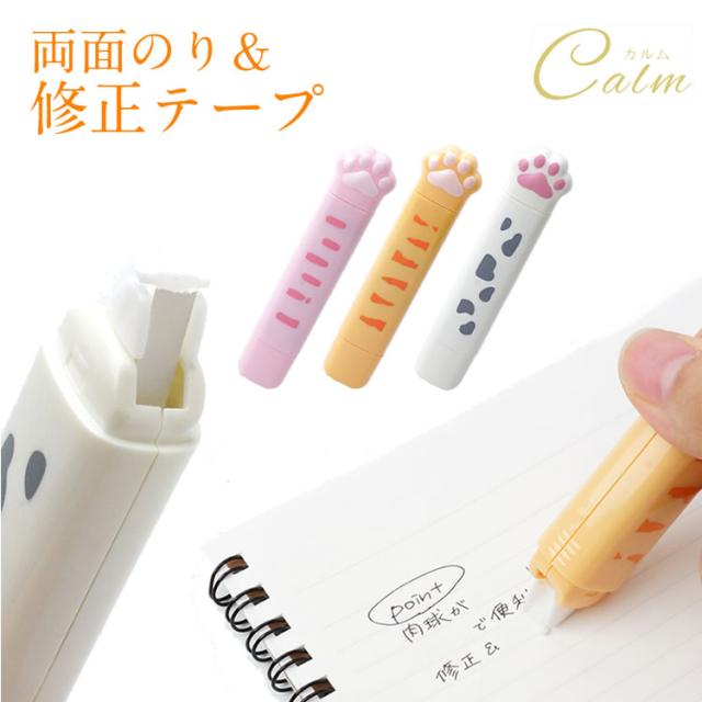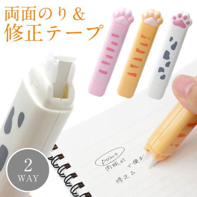 修正テープ 両面テープ 肉球 テープのり 猫 ネコグッズ 文房具 2in1 かわいい 文房具 ペン型 スリム 軽量 白猫 茶トラ ネコ プレゼント ギフト スティックのり
