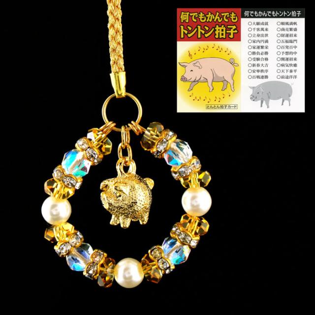 お願い小豚のストラップ ストラップ 天然石 メンズ レディース 幸運 開運 厄除け 縁起物 金運 富 家庭円満 女性同士のトラブルに パワーストーンストラップ 豚 ブタ 子豚 ルナフラッシュ ゴールド ギフト 贈り物 プレゼント