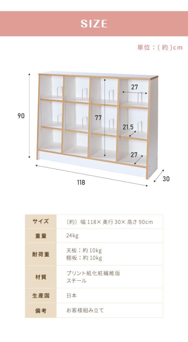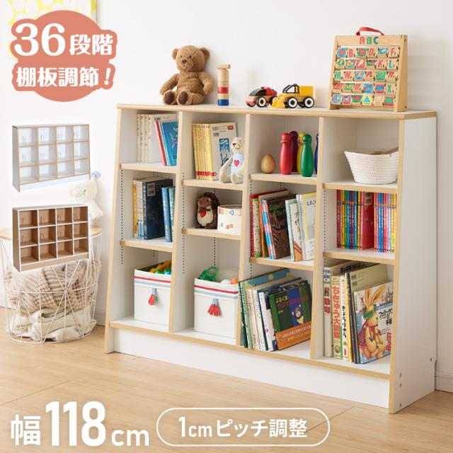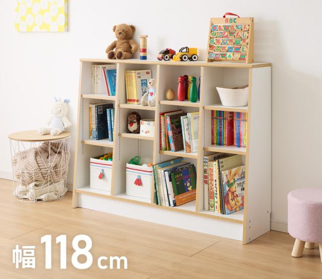 日本製 木製 絵本ラック 幅120cm 1cmピッチで調整できる おもちゃ箱 大容量 お片付け おしゃれ 木製 子供部屋 a4(代引不可)【送料無料】