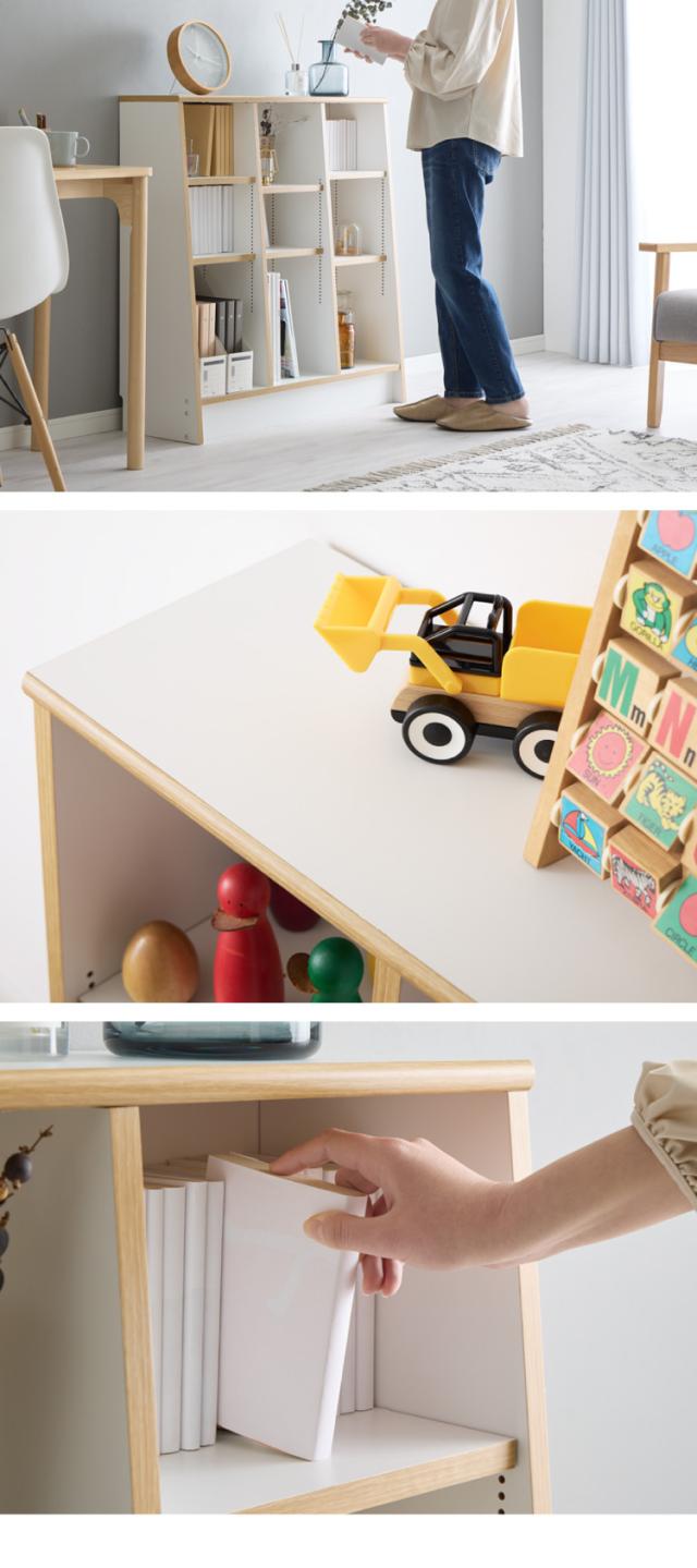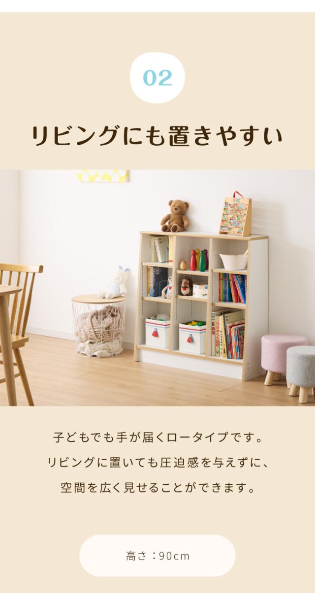 子供でも手が届く高さなので、自分で絵本を取りに行ったり片付けたりできますので教育にも最適です。