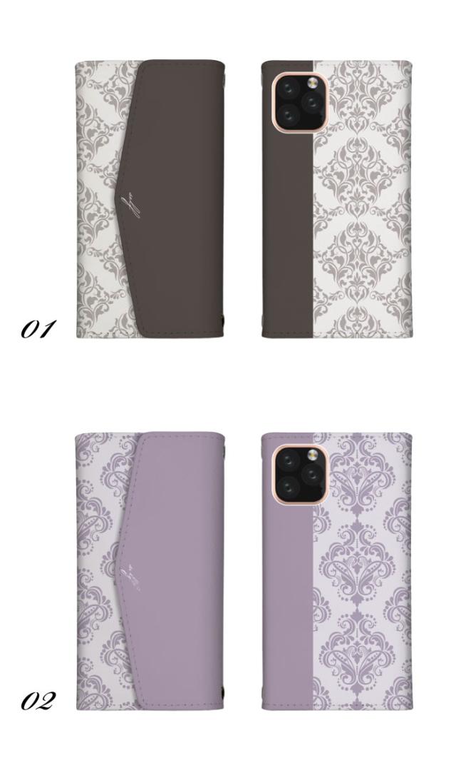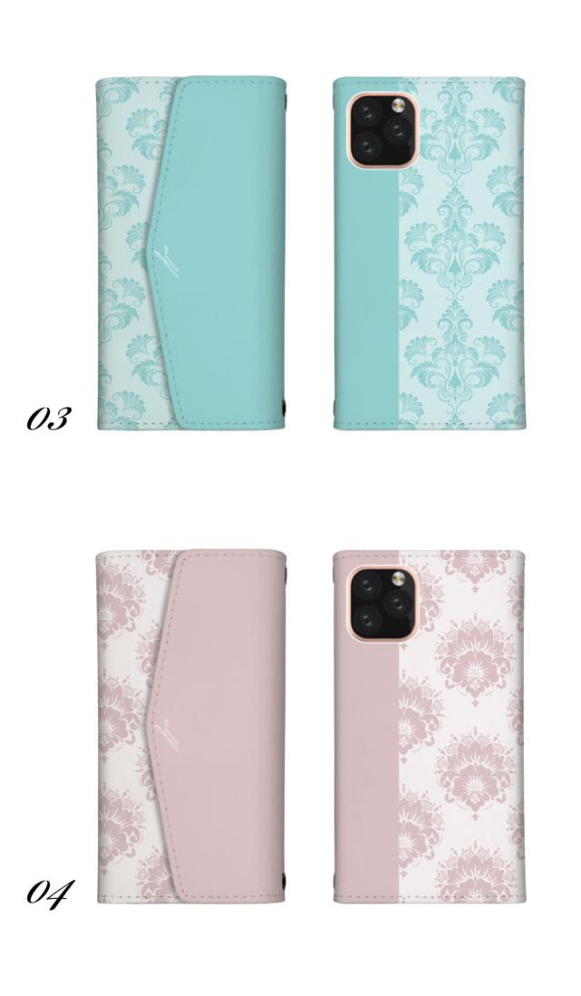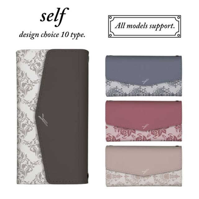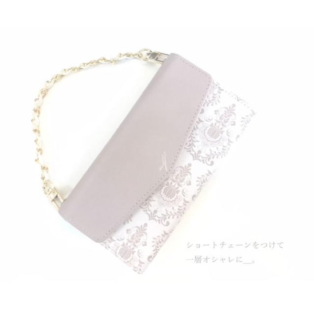 スマホケース Xperia 10 III Lite エクスペリア 10 III マークスリー ライト ケース カバー ショルダー 鏡付き 可愛い おしゃれ 肩掛け ダマスク柄 エレガント 大人 上品 ビクトリア調 大人可愛い