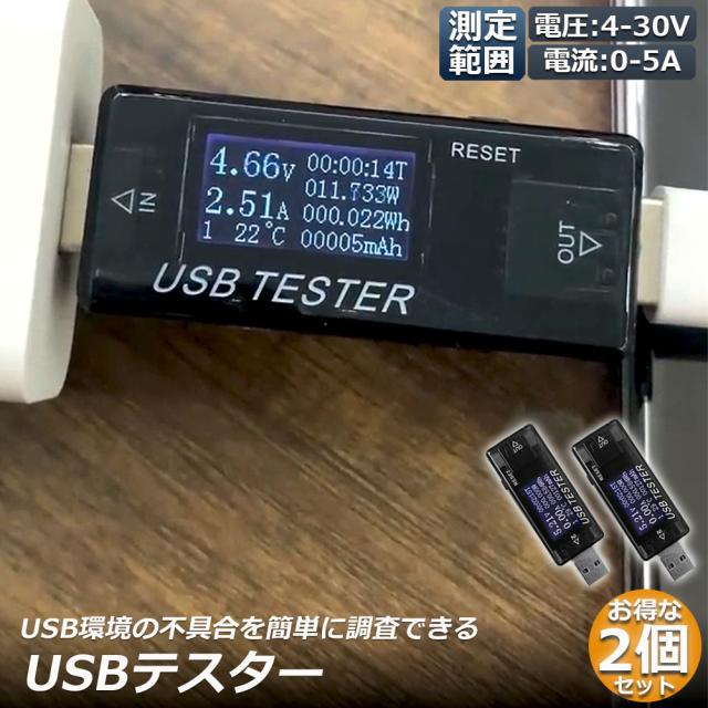 USB 電圧 電流 チェッカー 2個セット USBチェッカー USBテスター 電圧電流テスター デジタル USBマルチメーター5A 30V 電圧計メーター 電流計テスターPD多機能ディスプレイ 容量 電圧 電流検出器 送料無料