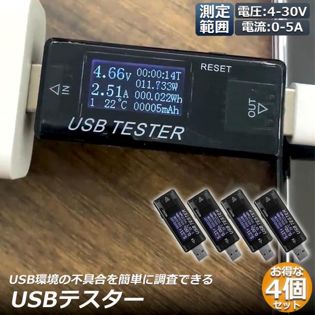 USB 電圧 電流 チェッカー 4点セット USBチェッカー USBテスター 電圧電流テスター デジタル USBマルチメーター5A 30V 電圧計メーター 電流計テスターPD多機能ディスプレイ 容量 電圧 電流検出器 送料無料