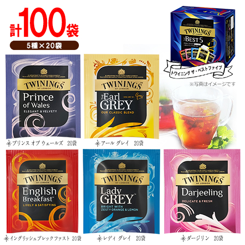 トワイニング ザ・ベストファイブ 2箱 5種×各20袋 計100袋 イングリッシュブレックファスト 他 紅茶 ティーバッグ 片岡物産