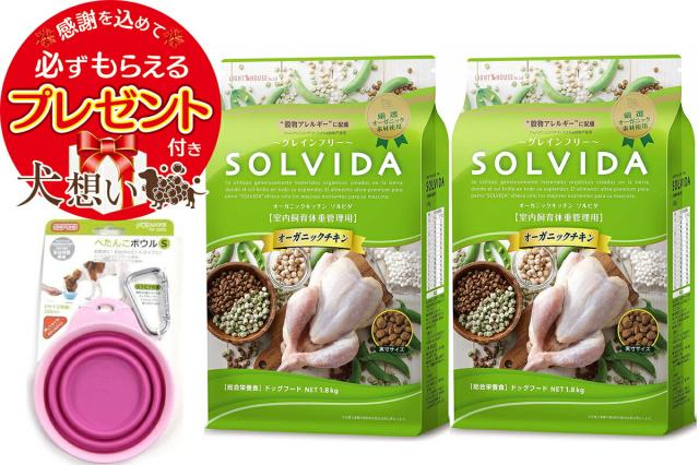 ソルビダ グレインフリー チキン 体重管理用 1.8kg 2個セット ぺたんこボウル ピンク Sサイズ付き