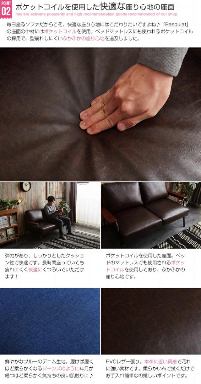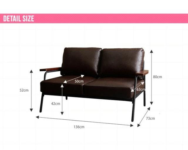 BARQ-2P バーク 二人掛け ソファー SOFA PVCレザー ブラウン/全2タイプ 幅136cm×奥行73cm×高さ約80cm 座面高:約42cm ブルックリンスタイル 西海岸テイスト 北欧 組み立て商品 ミッドセンチュリー 店舗用にも
