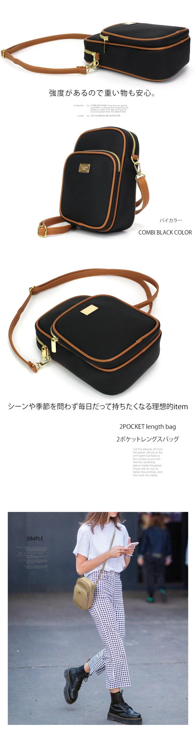ショルダーバッグ レディース 斜めがけ 2ポケット人気LENGTH ショルダーバッグ バイカラー オリジナルバッグ 韓国バッグ レディースバッグ 軽量 大人 斜めがけ くすみカラー カジュアル 小さめ バッグ かばん 韓国製