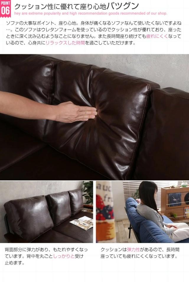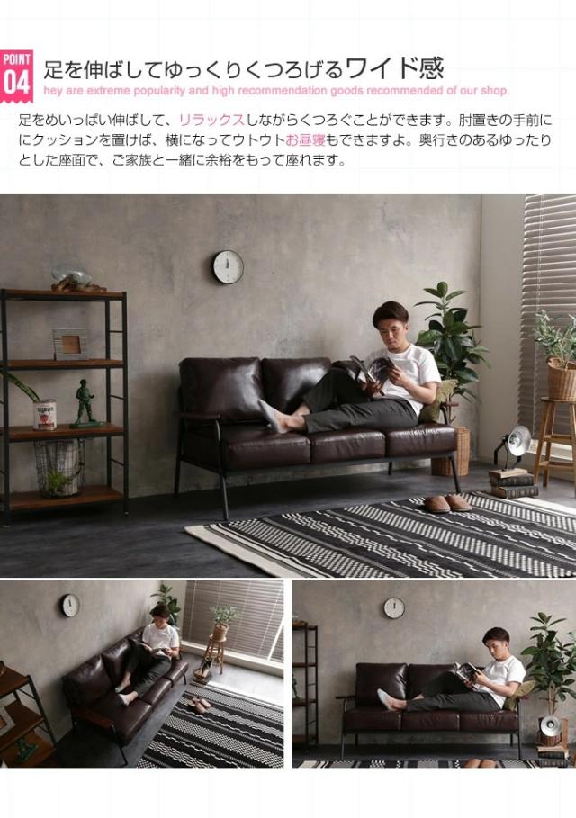 BARQ-3P バーク 三人掛け ソファー SOFA PVCレザー ブラウン/全2タイプ 幅166cm×奥行77cm×高さ約80cm 座面高:約42cm ブルックリンスタイル 西海岸テイスト 北欧 組み立て商品 ミッドセンチュリー 店舗用にも