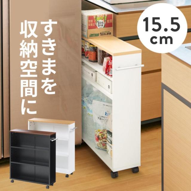 すきま収納ラック 3段 キャスター付き 幅15.5 奥行55.5cm 高さ65cm マルチワゴン[200-FCD073]