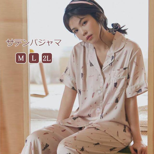 パジャマ レディース ルームウェア レディース 夏 ルームウェア セット レディース パジャマ ナイトウェア 前開き 上下セット 綿素材 半袖 長ズボン かわいいウサギ柄 部屋着 通気性 上品な光沢感 なめらかな肌触り カジュアル 着痩せシルエット イベント
