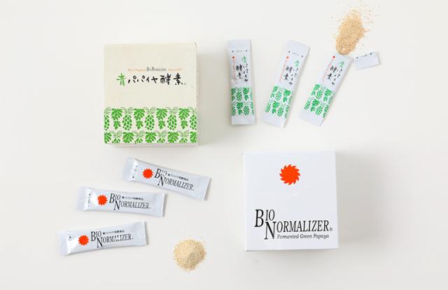 ![]() BIO NORMALIZER(バイオ・ノーマライザー) バイオ・ノーマライザーは、青パパイヤ発酵食品のパイオニアです。1969年に大里章博士によって青パパイヤの発酵に成功。20年の歳月を研究に費やし、1988年に販売開始しました。モンドセレクション金賞受賞やiTQiにおいしさと安心さを追求した品質が認められ「優秀味覚賞」なども受賞されました。青パパイヤ発酵食品は、日本国内にとどまらず、世界中の人々に愛され続けています | |||||||||||