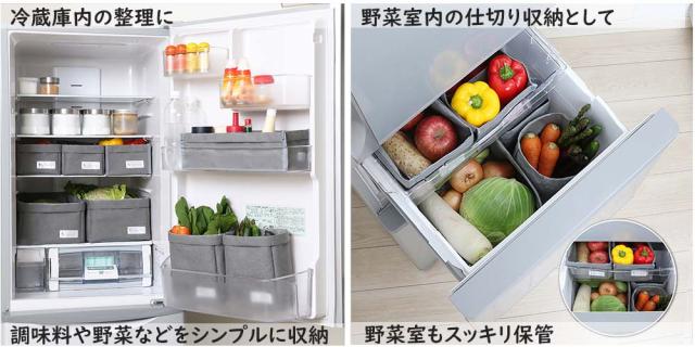 野菜収納・冷蔵庫内収納・キッチン周りの収納・小物収納・観葉植物の鉢カバーなどマルチに使用できる。
