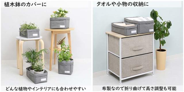 ●冷蔵庫内の野菜の仕分けや、キッチン周りの収納、小物収納、植栽の鉢カバーなどマルチに使用できる。