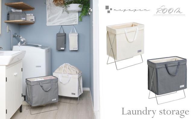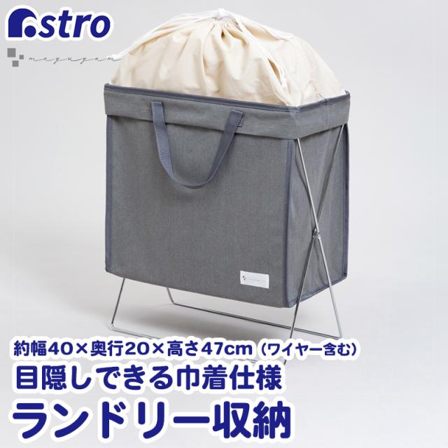 mayuyam アストロ ランドリー収納 巾着 グレー シンプル 洗濯カゴ 持ち手付き 防塵 撥水 860-26