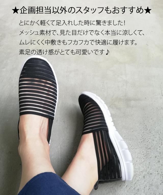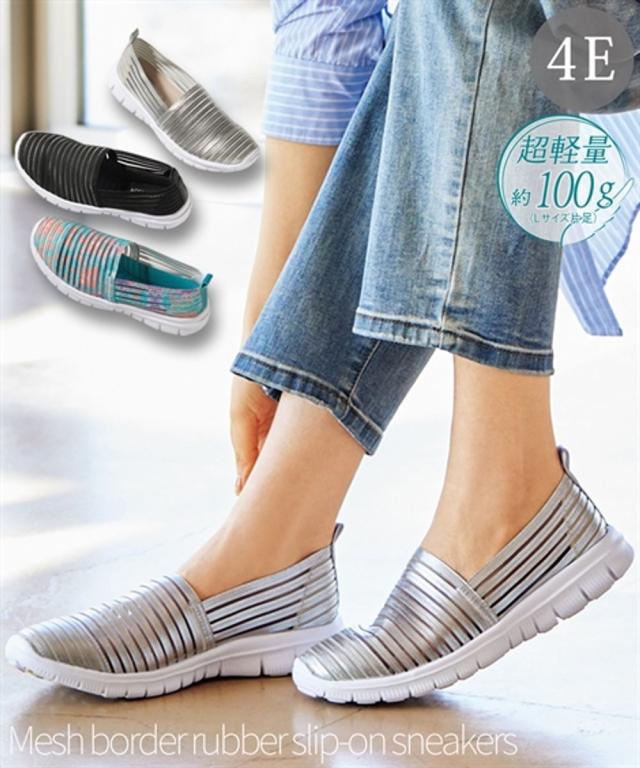 【ゆったり幅広】超軽量メッシュボーダーゴムスリッポンスニーカー(ワイズ4E)