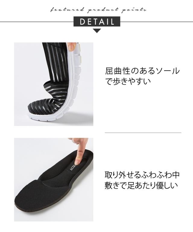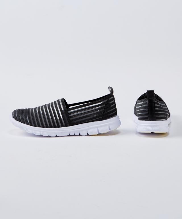 [keyword] 靴 レディースシューズ バッグ アクセサリー 大きいサイズ レディース ローヒール ぺたんこ フラット [comment] メッシュ×ゴムのボーダーデザインがとにかく可愛い!通気性抜群でムレ知らずのメッシュ素材と、グンと伸びてスポッと履けるゴムで履き快適な超軽量スニーカー。 屈曲性の良いソール、ふかふか中敷で長時間歩いても疲れにくいのもポイント。 ソックス次第でイメージ自在なシンプルな黒、素足で履いても華やかなボタニカル柄やレオパード柄から選べます。