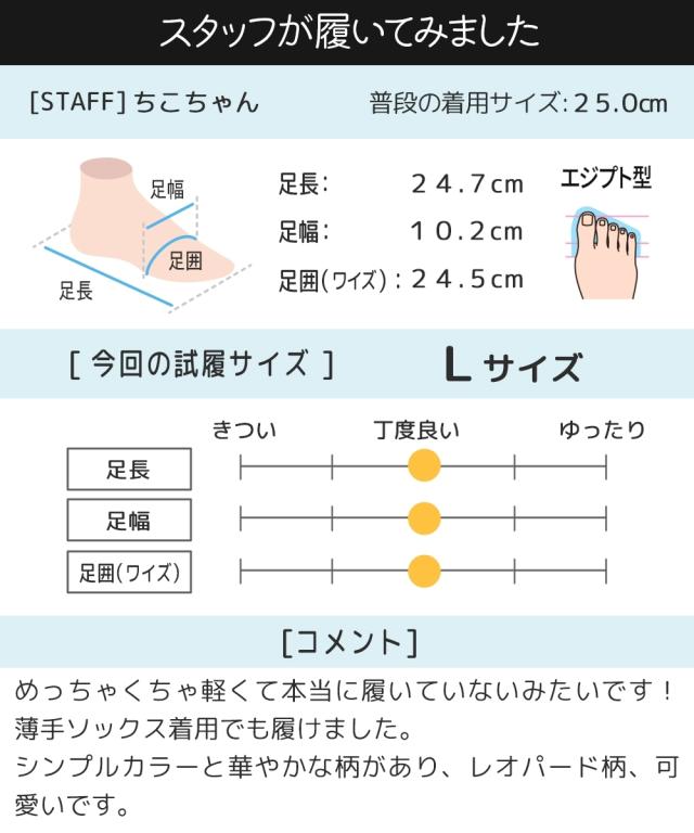 材質=合成繊維 底材=合成底 底の厚さ(後ろ)=約3cm ワイズ=4E ゴム素材のため、伸縮性があります。 柄の出方が多少異なる場合があります。 中敷きは取り外して乾かせます。 重量=約100g(4E:Lサイズ片足) 原産国:中国製
